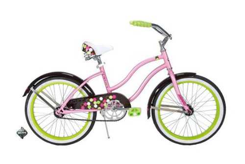 She has a style all her own and the Huffy Cranbrook is just her style! The pink bicycle features the classic cruiser style which is extra comfortable to ride. The cruiser bike features a cool color combination of Lime Green, Pink and Chocolate Brown with a fun polka dot design. Lime Green grips and rims look great with the Chocolate Brown fenders to keep her dry. It's hard to beat the padded spring saddle for comfort. The single speed bike has easy to use coaster brakes for smooth stopping.