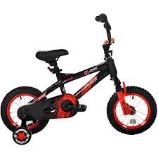 The Jeep X12 Bike is trail rated and ready to go! This rugged Jeep Bike for boys comes equipped with a steel frame and real suspension fork that soaks up bumps, big or small. The design makes this boys' bike tough and durable, so it can be used as a child's first bike, or a bike for the seasoned rider. With a CPSC full-wrap chain guard and padded cross bars, this Jeep Bike provides extensive safety features. The Jeep X12 Bike offers a coaster brake and front hand brake, so that your little boy can learn both braking styles. Featuring glossy black paint with red designs, this is a stylish bike that boys feel proud riding. This Jeep X12 Bike for boys comes with removable training wheels and 12" tires.