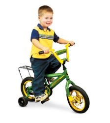 John Deere 12" Boys BikeUnit features heavy-duty steel frame, carry rack and adjustable training wheels. Age grade 3+ yrs.Ships alone. Please allow more time for this item.