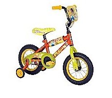 The Chuggington 12" bike is the perfect bike for the beginner. The heavy duty steel frame will take abouse from the little one as he learns how to balance and ride. Equipped with a low stand over frame for easy riding. The quick release seat post for fast growing kids, foot brake for safety and training wheels for stability. Chuggington handlebar bag to carry Wilson and his friends and a horn to let everyone know you are cruising along