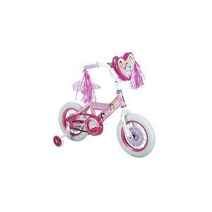 It can be fun to feel like a princess and its always fun to ride your bike with a Disney Princess! Disneys Belle loves to go on sidewalk bike rides on this 16 Huffy bike. The Pearl Pink steel frame bike features a decorated handlebar pad for safety and comfortable pink grips, just her size. The decorated seat is padded so girls stay comfortable while they ride. The bike features an easy to use coaster brake and a fully enclosed Huffy Double guard chain guard. Sturdy steel training wheels are wide for added stability. Easy assembly!Huffy training wheel bicycles come in several sizes and are a great way to get children started bike riding. Each bicycle features a steel frame and wide training wheels. Padded seats are comfortable and the grips and pedals are specially sized for the smaller rider. When the child is ready, the training wheels can be removed for teaching the child how to ride a two wheeler. Nothing beats the feeling of riding your first bike on your own! Huffy Corporation has been in the bicycle business for more than a hundred years, with pioneering introductions such as the Huffy Dragster, Radio, Scout and numerous other bikes remembered by millions. Its bikes are hallmarks of innovative design, high-quality components, proven durability and time-tested performance. The company offers products for all ages from tricycles, scooters and childrens bicycles to BMX, mountain, cruiser and commuter bikes.The Huffy 16 inch Bike features: Disney Princess Belle Pearl Pink Steel frame Disney Princess Belle Handlebar pad for added safety Padded seat for comfort Coaster brake for sure stopping Wide steel training wheels provide added stability Easy to assemble Limited Lifetime Frame Warranty from Huffy Corporation